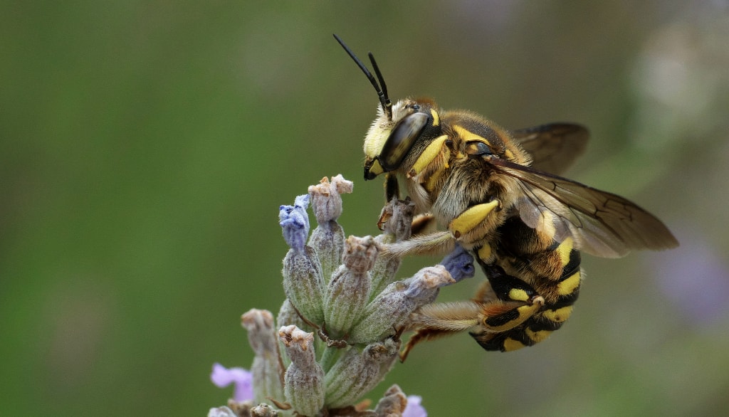 L'abeille cotonnière, Anthidium manicatum, fait partie des abeilles sauvages qui vivent au Québec.